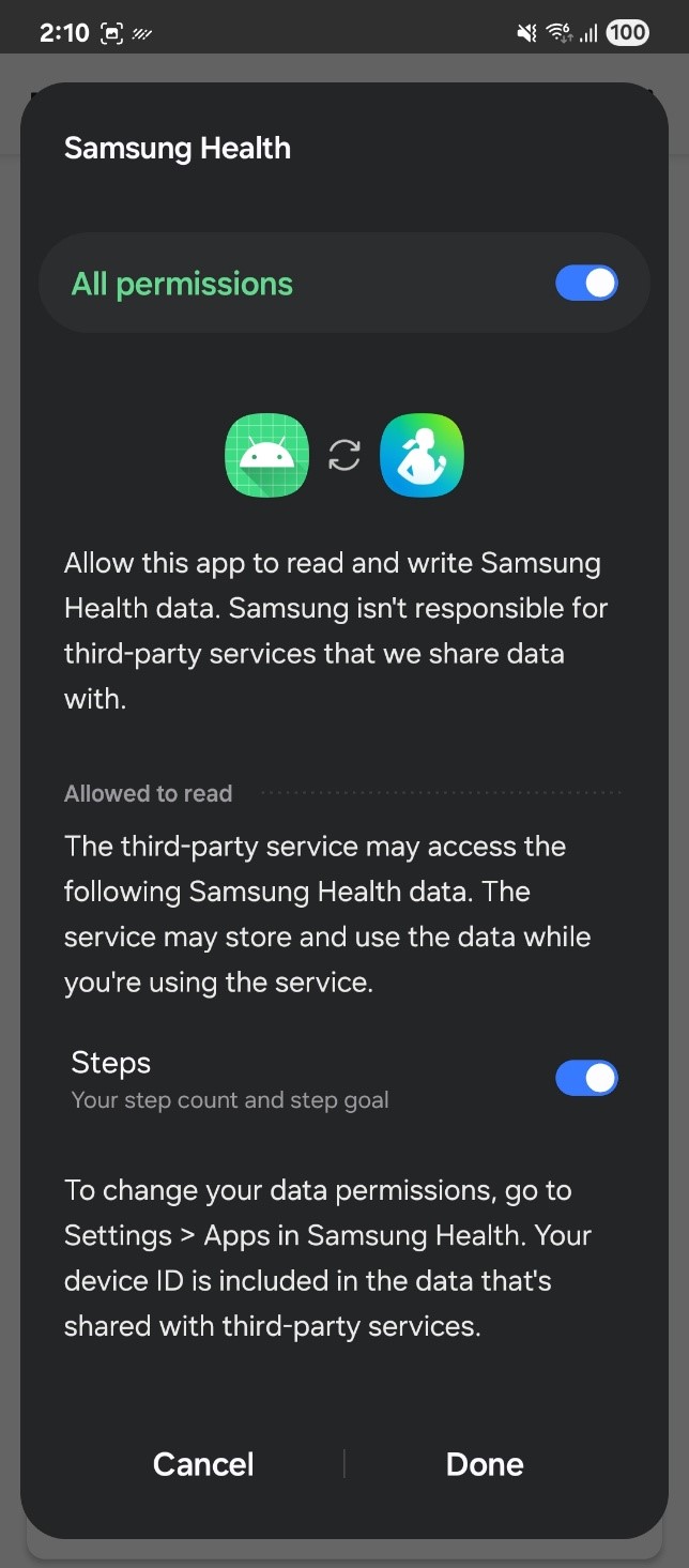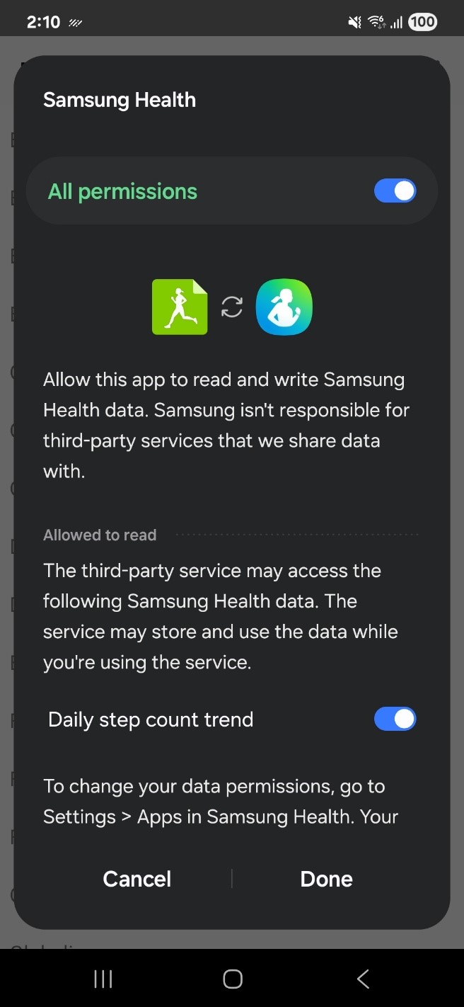 Isso garante que você receba os mesmos dados de contagem de passos exibidos no aplicativo Samsung Health.